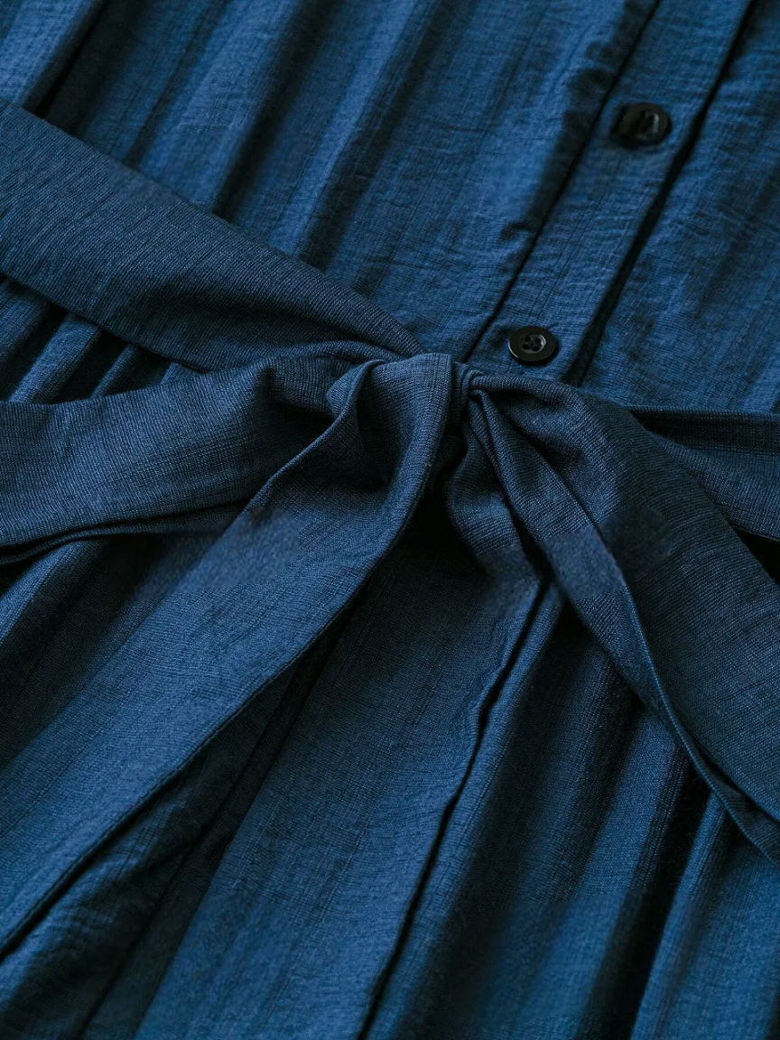 Women’s Navy Blue Sleeveless Maxi Dress | Button Front Collared Neck Tie-Waist Tiered Casual & Office Wear Dress